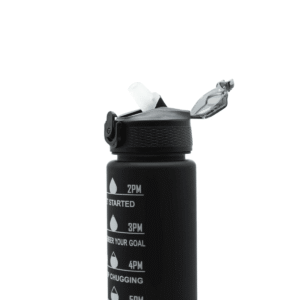 A motivational water bottle has time markers printed on the side. Each marker shows a target water level for that time of day. For example, the 8am mark might be at 500ml and the noon mark at 1,000ml. You check the bottle against the time and drink to reach the target. It helps people meet their daily water intake goal of 2 litres without guessing.